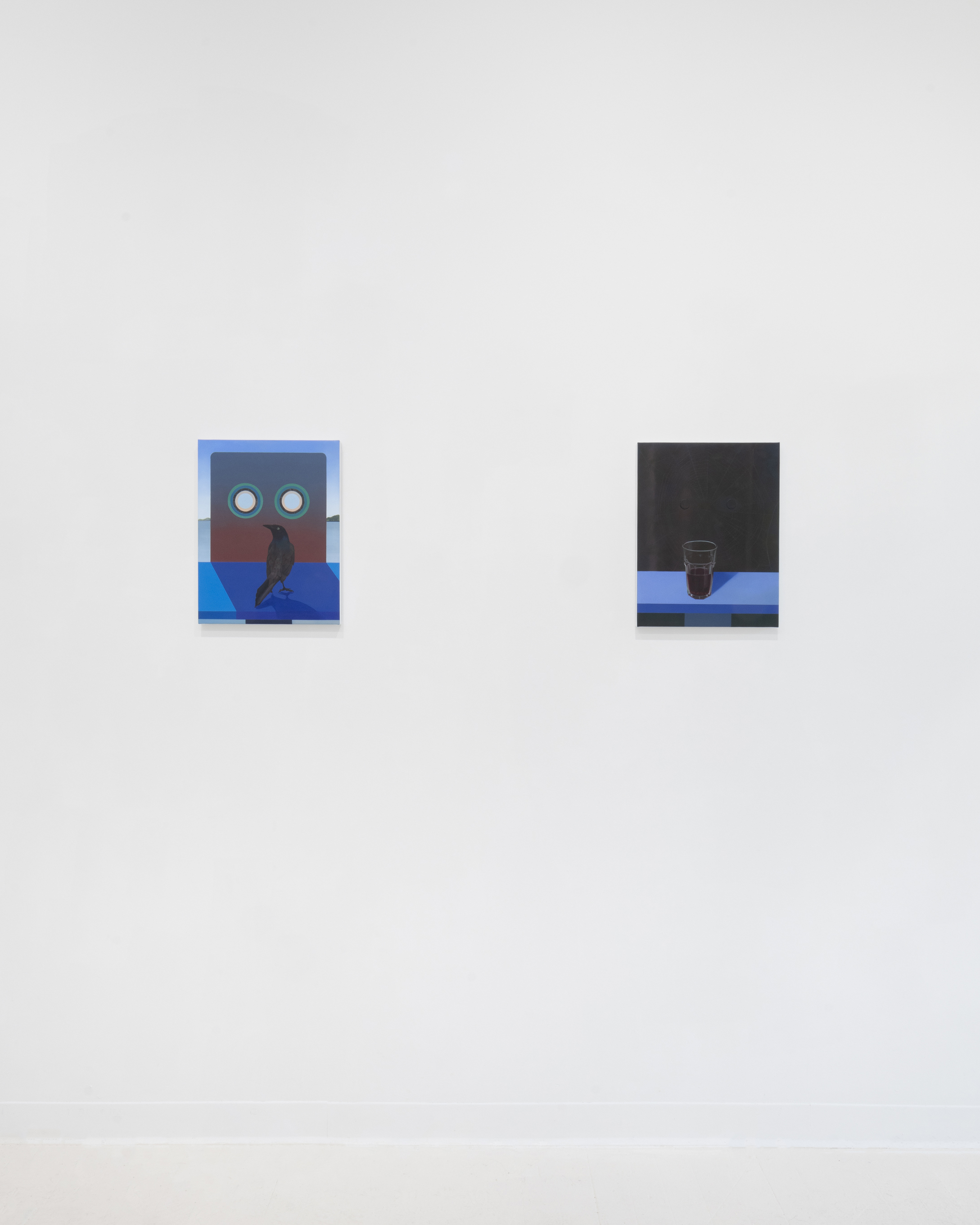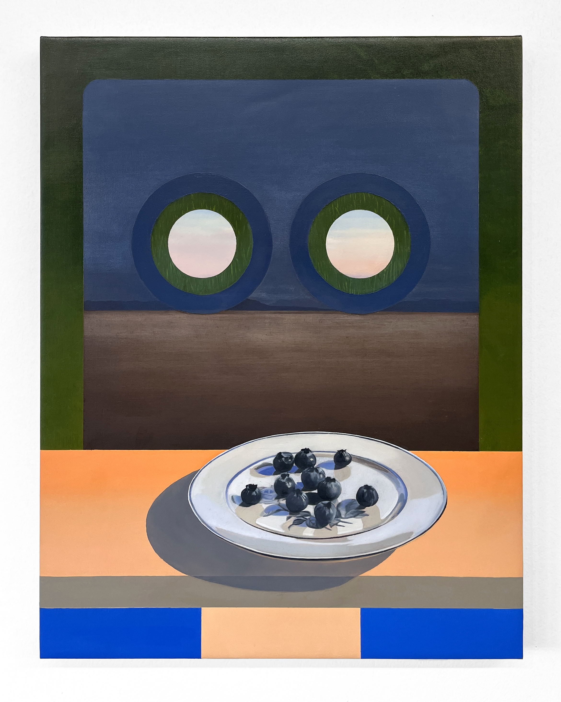 Perspective from the front (bleeding heart, blackberries), 2025, oil and wax on linen, 14 x 18 in. (45.7 x 35.6 cm) Decoy with rocks and bleeding hearts (memorial), oil and wax on canvas, 20 x 24 in. Perspective from the front (Souvenir), 2025, oil and wax on linen over panel, 18 x 14 in (45.7 x 35.6 cm) Blue Skies with lemons (Souvenir), 2025, oil and wax on canvas over panel, 30 x 22 in (76.2 x 55.88 cm) Peach, ribbon, and black vase in afternoon light (after "Woman Holding A Balance" by Johannes Vermeer) (undersea cables), 2024, oil and wax on canvas over panel, 30 x 22 in (76.2 x 55.88 cm) Mourning dove at sunset (undersea cables), 2024, oil and wax on linen over panel, 18 x 14 in (45.7 x 35.6 cm) Undersea cable (blue clock), 2024, oil and wax on canvas over panel, 24 x 20 in (61 x 50.8 cm)